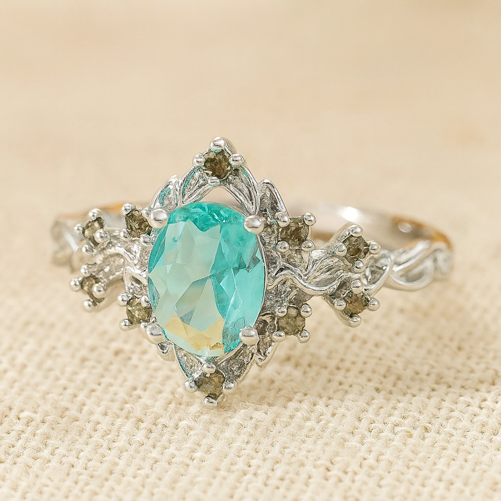 - Oval-cut aqua gemstone centerpiece